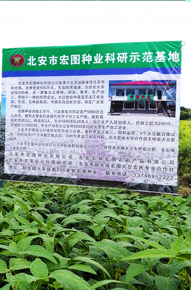北安市宏圖種業(yè)有限公司是一家及大豆育種研發(fā)、生產(chǎn)加工、銷售于一體的種業(yè)企業(yè) ,成立于2010年6月24日。公司坐落在北方邊陲重鎮(zhèn)北安市趙光鎮(zhèn),公司擁有趙光農(nóng)場、紅星農(nóng)場、建設(shè)農(nóng)場等多家良種繁育基地。得天獨厚的地理優(yōu)勢為繁育出優(yōu)質(zhì)的大豆種子提供了便利的條件。